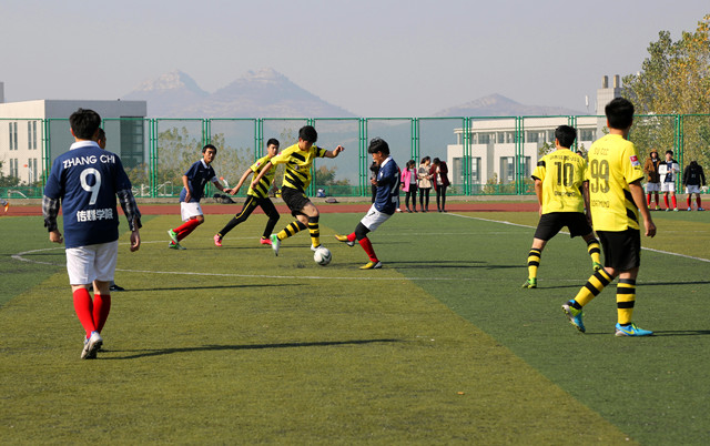 本站讯 11月4日,由校团委、公共课教学部主办,公共课教学部体育教研室、校学生会体育部承办的2014年“艺苑杯”学生足球赛在长清校区运动场正式开赛。校团委负责人与众多足球爱好者们共同观看了比赛。