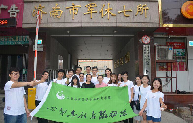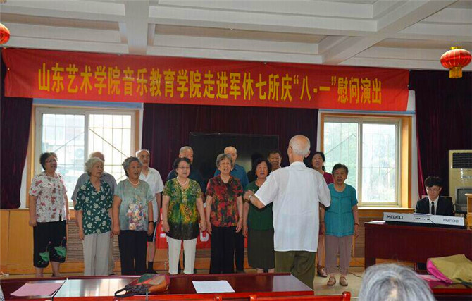 本站讯 为纪念中国人民抗日战争暨世界反法西斯战争胜利70周年,进一步传承历史,弘扬爱国主义和民族精神,引导青年学生践行社会主义核心价值观,在八一建军节即将来临之际,山东艺术学院音乐教育学院暑期社会实践团于7月16日走进济南军休七所进行了慰问演出,用歌声铭记历史,唱响民族复兴的主旋律.