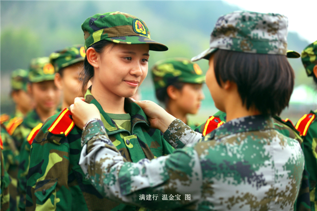 本站讯 历经十余天的风雨和骄阳,终于迎来了汇报的喜悦与紧张。山风吹拂旗帜猎猎作响,心情跟随云朵高高飞翔。亲爱的教官啊,感谢您为我整理衣装,敬爱的老师啊,感谢您让我学会了勇敢和坚强。迈着正步走过主席台的一刻,我已经明白,即使脱下这身迷人的绿军装,我也会像真正的战士一样,在闳约深美的校园里追寻艺术的梦想,在专业跋涉的道路上活出自己的模样。