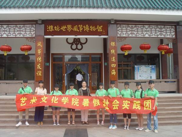 艺术文化学院暑期社会实践团赴潍坊组织开展了以风筝的起源、发展现状及现代应用保护为主题的暑期社会实践和调查活动。社会实践团一行实地考察了“风筝博物馆”,对潍坊杨家埠民间艺术大观园进行参观调研,探寻杨家埠风筝的发展史。同学们在解说员的带领下参观了杨家埠的年画陈列馆、风筝陈列馆,并现场观看了民间艺人们进行木板雕刻、风筝轧制等工作流程。在社会实践和参观调研活动中,同学们走出书本,利用自己的专业特长从理论和实践两个方面认识了风筝,更立体、更全面地体会到风筝带来的价值,引发了他们一系列深入的思考。