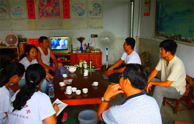 调研团队员在和王悦平老人座谈交流
