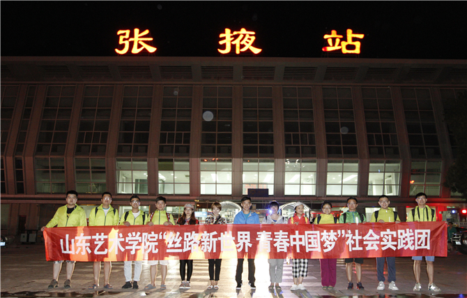 本次暑期社会实践活动由张掖团市委邀请,山东团省委统一部署,全省共有17所高校的21支实践队伍入围,我校“丝路新世界 青春中国梦”社会实践团队是全省艺术院校唯一一支入选的团队。在团张掖市委支持下,“丝路新世界 青春中国梦”社会实践团按照一部纪录片、一份摄影集、一篇调研报告、一定程度能力提升的“四个一”目标展开了社会实践活动。实践团队在实践过程中将队伍定名为:蓝莲花,花意蕴含同学们的信念,不惧困难、不惧艰险,如蓝莲花般坚韧。为完成实践任务,同学们按照每天的日程进行拍摄、采访、调研、拓展,虽然身体上劳累,心里却非常充实。条件艰苦任务艰巨,部分队员因高原反应强烈而体力不支,队员们相互照顾相互帮助达到了空前的团结。成员们来到位于山丹县的沙沟村,与居住在草原深处的村民们深度交流;走到张掖街头,对路人进行采访并深入调研民情民风,连夜制作纪录片;联合其他实践团队,到地势险要的山区,进行素质拓展;走进张掖城市博物馆,对张掖的历史、城市转型及未来城市发展规划进行了解。高原强烈的紫外线没有拖慢一丝实践调研进程,突如其来的暴雨没有阻挡实践团队拓展的脚步。
