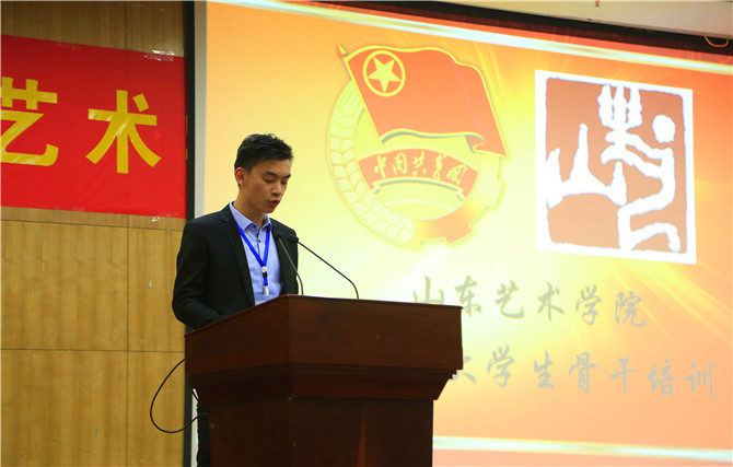 培训开始,校学生会负责人介绍了山东艺术学院学生组织基本情况,随后,各高校学生会代表致辞并分享工作经验。校研究生会罗丞坤同学做题为《落实》的学生工作经验分享。罗丞坤用幽默轻松的语言解释了“落”和“实”的三个基本字义,与现场同学分享“落实”的真正含义:凭心出发、坚实、踏实、实干。山东大学团委学生组织办公室兼职主任郝伟栋做了《当我们在讨论学生会时,我们在讨论什么》的主题报告。郝伟栋详通过释义全国学联对学生干部的定义,以个人工作经历为基础,详尽的阐释了作为一个学生骨干应该做什么,一个优秀的学生组织的核心战斗力是什么,以卡福的作品引出“当我们在谈论学生会时,我们在谈论什么?”这个主题,提出学生骨干“认真、负责、耐心、细致、专业、守时、节约、感恩、奉献、热情”十大品质。