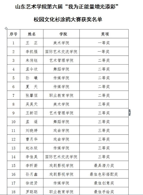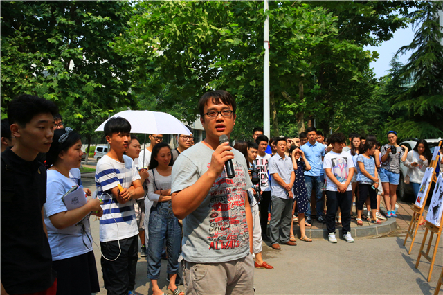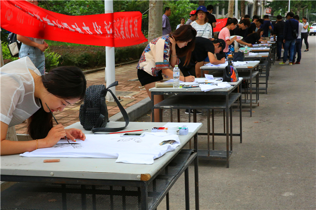 本站讯 为进一步贯彻“三走”精神,丰富校园文化生活,展现艺苑学子的青春风采,提高学生们动手能力、创新能力及艺术修养,6月30日下午1点,由山东艺术学院团委主办,设计学院团总支承办的山东艺术学院第六届“我为正能量增光添彩”校园文化衫涂鸦大赛在设计学院教学楼A楼前顺利举行。设计学院相关负责人、校团委老师、各二级学院团总支书记、设计学院辅导员老师以及部分艺术设计专业老师受邀参加大赛并担任评委。我院200多名学生参加了开幕式并观看了比赛。