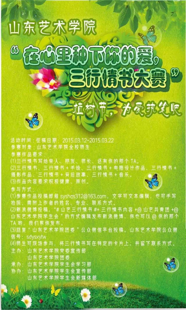 本站讯 近日由校党委宣传部、团委主办,校学生会承办的山东艺术学院“在心里种下你的爱 三行情书征集活动”圆满结束。