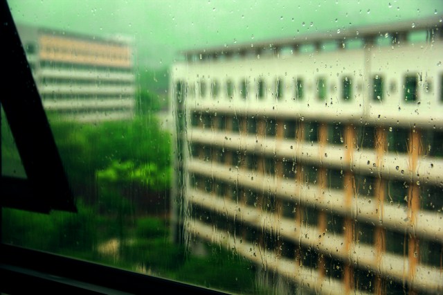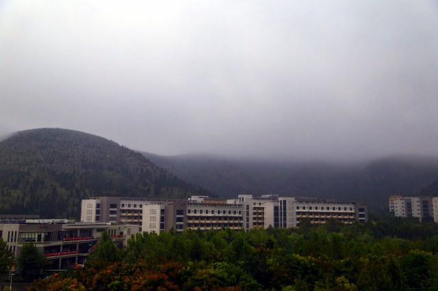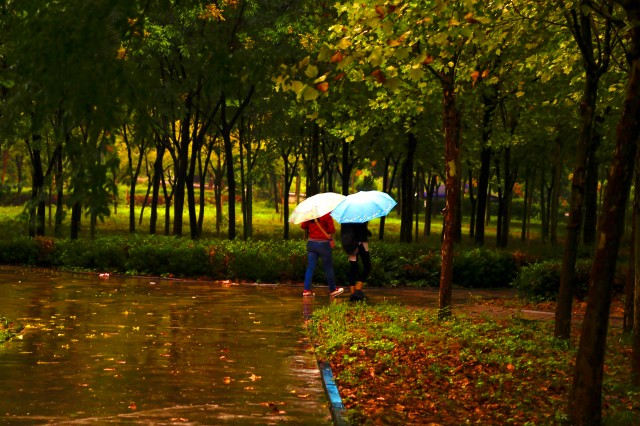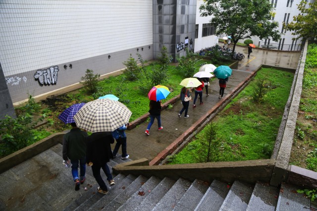 一场秋雨,凤笙和瑞的校园遍开伞花。漫天雨丝,细细飘洒在山体怀抱的象牙塔,烟雨朦胧,雾霭环绕,依山而建的山艺翠色欲滴,恍若一轴浑然天成的青绿山水长卷。身临其境,不由让人惊叹:“艺苑如画中,山晓望长空。雨水夹明镜,遍地皆诗情”。