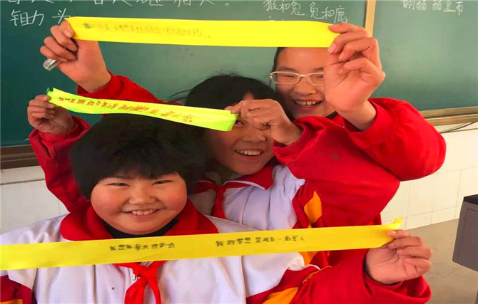 快乐的时间总是短暂的,转眼又到了分别的时候了。志愿者们将准备好的心愿绳系好,又将许愿丝带分发给小朋友们,让他们在丝带上写下自己的心愿,然后系到心愿绳上,不一会,五彩缤纷的心愿丝带,便在东兴小学的操场上,随风飘扬。志愿者们看了他们丝带上的内容,发现有的孩子希望得到这样或那样的小礼物,而大多数孩子最大的愿望就是希望得到父母的陪伴,家人的关怀。