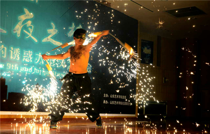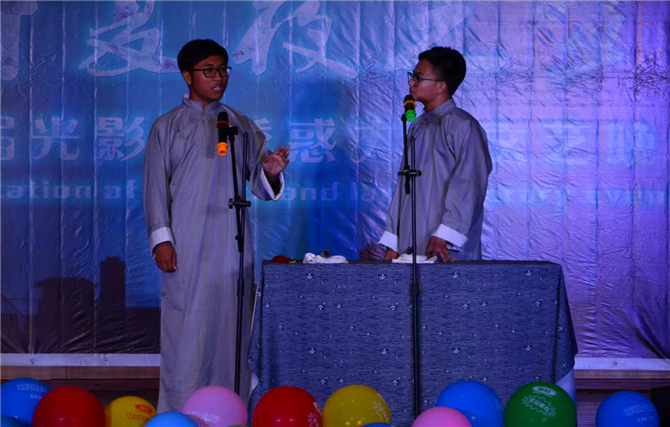 晚会在街舞社团Team Ours的热舞中正式开始,他们精湛的舞技点燃了场内观众的热情,现场欢呼不断;民谣人阿见,在晚会现场分享自己民谣曲的灵感,倾情演唱自己原创民谣,并与同学们互动,送出自己的专辑;更有“中国梦之声”山东赛区山艺站的冠军周小博前来助阵,浑厚的嗓音,引得现场观众阵阵呐喊。本次晚会的两场相声实是晚会的亮点,他们灵活运用祖规祖训,其中的包袱看似合乎常规,实则妙不可言……别出心裁的节目令人徜徉在光影诱惑的海洋,展示了我校学生的青春活力,体现出当代大学生的良好风貌,活动现场气氛热烈,欢笑声、呐喊声此起彼伏。