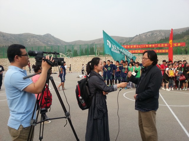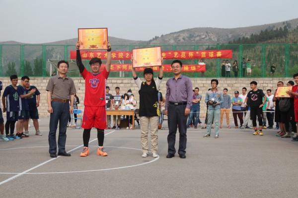 本站讯 5月8日下午,我校2014年“艺苑杯”学生篮球赛决赛暨“三走”活动启动仪式在长清校区篮球场举行,校党委副书记王力克出席并为冠军球队颁奖,校团委书记苏茂兴、公共课教学部主任张有平、设计学院党总支副书记姜东进、戏剧影视学院党总支副书记李军、校团委副书记孔宪坤等到场观看了比赛。山东电视台体育频道3名记者对整个活动进行了现场采访报道。