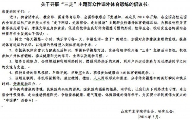 在比赛间隙,还举行了“走下网络、走出宿舍、走向操场”活动启动仪式,校学生会、研究生会代表现场向全校同学发出了《关于开展“三走”主题群众性课外体育锻炼的倡议书》,由此拉开了我校“三走”活动的大幕。舞蹈学院的同学们带来了精彩的啦啦操表演,激情四射、动感十足,凸显了艺苑学生的独特魅力和青春活力。比赛结束后,我校党委副书记王力克教授,戏剧影视学院男篮队员穆凡宇还分别接受了山东电视台体育频道的现场采访,王书记在采访时谈到了“三走”活动对青年学生成长成才的意义,充分肯定了“艺苑杯”篮球赛对于增强学生的身体素质、增进各学院的友谊和交流、活跃校园文化氛围方面的积极作用。