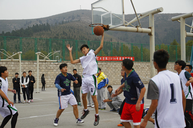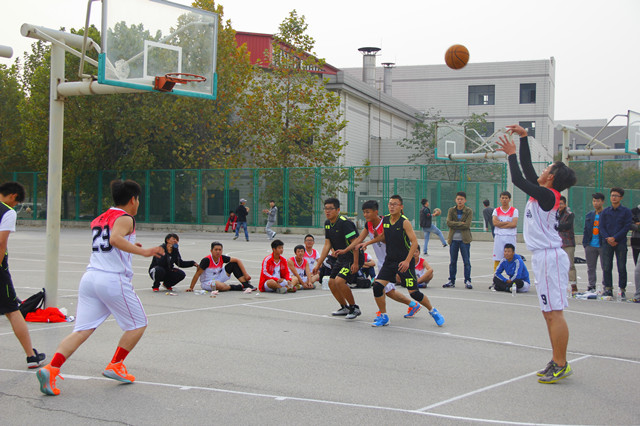 本站讯 10月28日下午, 由校团委、公共课教学部主办,校学生会体育部承办的2014年“迎新杯”篮球赛(男子)在长清校区篮球场正式开赛。