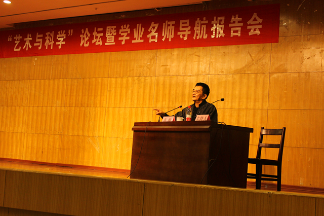 本站讯 11月17日下午2:30,由校团委、研究生处主办,校研究生会承办的“艺术与科学”论坛暨学业名师导航系列报告会首场报告在我校长清校区图书馆报告厅如期举行。报告会由梅高(中国)创意咨询有限公司董事长高峻先生和清华大学美术学院赵健教授主讲,校研究生处负责人和校团委分别主持,各二级学院的老师及研究生、本科生共四百余人聆听了报告。