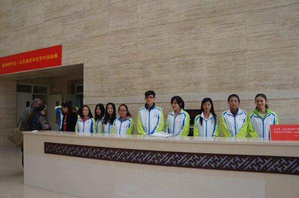 本站讯 10月27日上午,由校团委、志愿者协会选派的14名志愿者前往山东省文化馆参与十艺节系列活动重要美展——“美丽的传说·山东省民间文学中国画展”的服务工作。