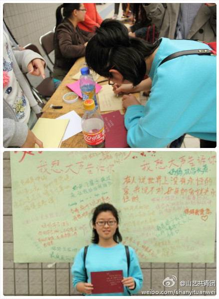 本站讯 5月9日上午,由校团委主办,校学生会女生部承办的“妈妈,我想告诉您”母亲节主题活动在长清校区餐厅前广场举行。许多同学通过活动送出了自己对母亲的思念及祝福。