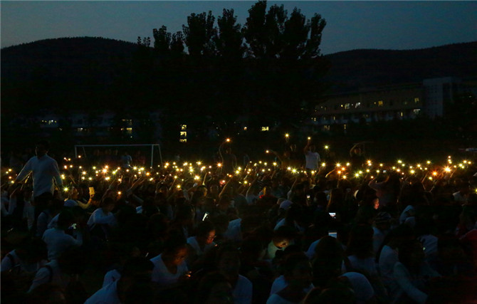 本次新生军歌比赛有来自长清校区各二级学院的九支队伍参加。下午6时,比赛正式开始。参赛队伍步伐整齐、歌声高亢而嘹亮,合唱队的队员们,面带自信,神采飞扬,把他们对祖国的热爱之情、对大学生活的向往之意表达得淋漓尽致。新一代的艺苑学子们展现出了傲人的风采。军歌唱响,激昂的声音仿佛将在场的评审与观众带回了往昔那个峥嵘岁月。火热的赤子之心铿锵有力,鲜艳的五星红旗迎风飘扬。全场的观众掌声雷动,呐喊声一潮高过一潮,在操场上空久久回荡。最终,戏剧影视学院以《军歌嘹亮像太阳》荣获本次军歌比赛一等奖,职业教育学院、戏曲学院分别以歌曲《假如战争今天爆发》、《强军战歌》荣获二等奖,传媒学院、设计学院、舞蹈学院分别荣获三等奖,艺术管理学院、美术学院、国际艺术交流学院荣获本次大赛优秀奖。