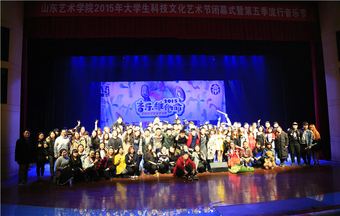 本站讯 12月22日晚,由校团委主办、音乐学院承办,艺术实践与创作处协办的山东艺术学院第五季流行音乐节暨2015年大学生科技文化艺术节闭幕式在文东校区三楼剧场隆重举行。校党委副书记王力克、共青团天桥区委书记朱英涛、山东省十佳辅导员、山东大学威海分校商学院范蕊老师,我校学生处、团委、各二级学院党总支负责人、团总支书记、部分辅导员老师及600余名学生代表参加了本次活动。