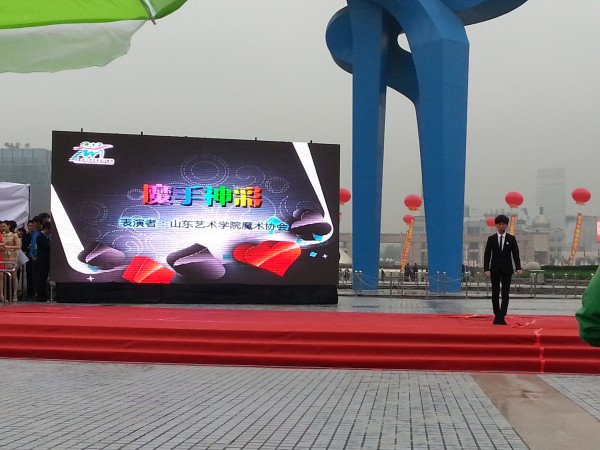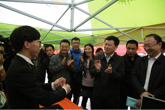 本站讯 4月26日,由团省委、省委高校工委、省文化厅、省学联主办的首届“电信飞young”杯山东省大中专学生社团节省级公益活动暨纪念五四运动95周年主题团日在济南泉城广场举行。团省委书记张涛,省委高校纪工委书记张圣中,团省委党组成员、纪检组长谢宁,学校部部长郑思洁,部分驻济高校团委负责人出席了本次活动。我校团委负责人带队参加,活动中我校魔术协会魔术师在社团风采展展示中的精彩表演得到了团省委领导的充分肯定。