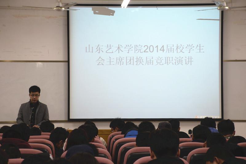 本站讯 3月6日,山东艺术学院2014届校学生会主席团换届竞职演讲在长清校区艺文楼四楼报告厅如期举行,校团委及各二级学院团总支老师出席了此次竞职演讲活动。