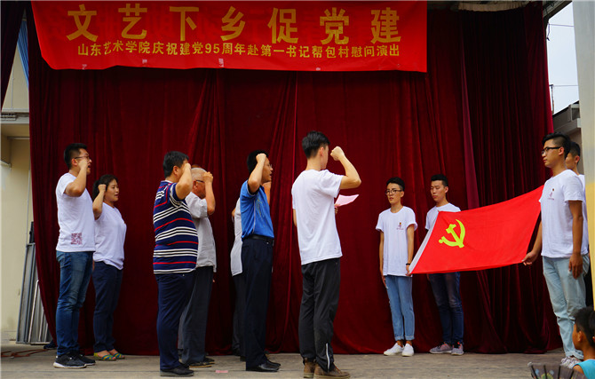 本站讯 7月1日,我校“青春行动助脱贫 文艺下乡促党建”庆祝建党95周年赴“第一书记”帮包村慰问演出在郓城县黄集乡东关村举行,活力四射的大学生们为帮包村的党员、群众们呈现了一台精彩纷呈的文化大餐,用自己的方式为党的生日献上了一份贺礼,也拉开了我校2016年大学生暑期社会实践暨“三下乡·千村行动”大幕。