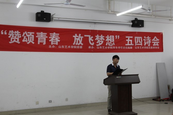 本站讯 为纪念五四运动94周年,弘扬以爱国主义为核心的民族精神和以改革创新为核心的时代精神,引导团员青年为实现“中国梦”而刻苦学习,提高大学生的思想政治素质,5月3日下午2时,由校团委主办、校学生会社会实践部和志愿者协会联合承办的“赞颂青春、放飞梦想”五四青春诗会在长清校区举行。校团委相关负责人与来自各二级学院推荐选送的20余名参赛选手和上百名同学参加了活动,校学生会主席团成员及各二级学院学生会主席担任诗会评委。