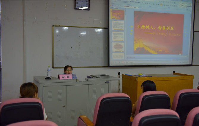 本站讯 立德树人,青春创业;学“八字真经”,做创业先锋。5月28日晚六点半,由山东艺术学院团委主办、校学生会承办的山东艺术学院2015年“青年马克思主义培养者工程”暨团校团支部书记培训班在长清校区艺文楼报告厅开授第三堂团课。山东艺术学院设计学院团总支书记张艳出席本次团课并担任主讲人。