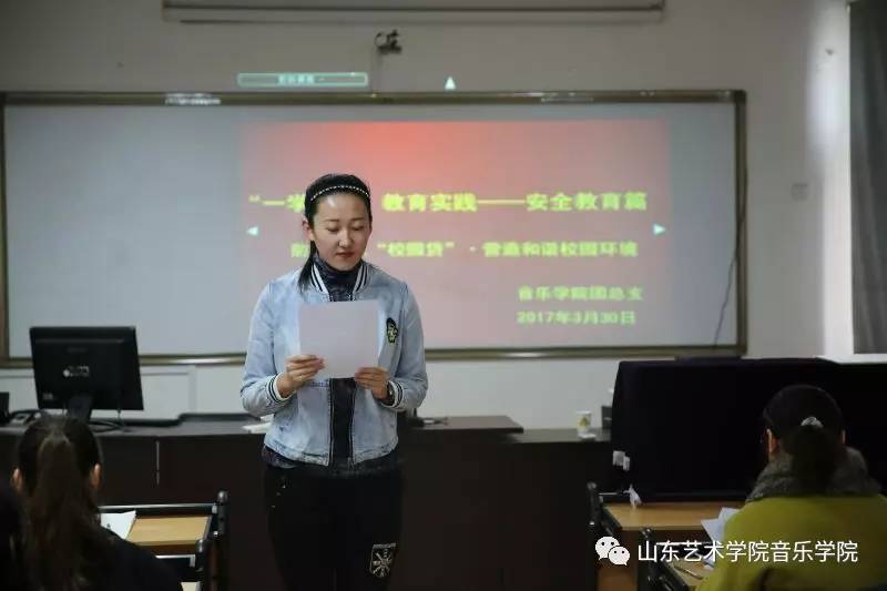 据悉,音乐学院将以此活动为契机,继续强化落实学生安全教育工作,结合实际,认真摸索“校园贷”防控的新方法,积极营造平安和谐稳定的校园环境。