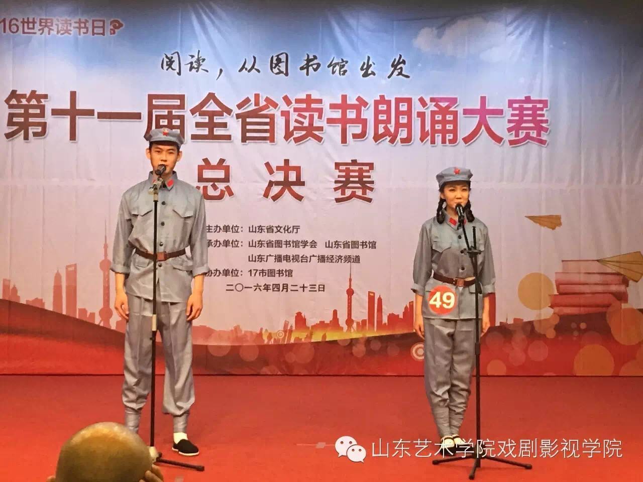 本次大赛由山东省文化厅主办,山东省图书馆学会、山东省图书馆、山东广播电视台广播经济频道承办,17市图书馆协办。经过各分赛区激烈的选拔,共有53组作品进入全省决赛。山东艺术学院戏剧影视学院播音与主持艺术系的同学们积极参与、认真备战,赛场上精彩的展现得到了评委专家和现场观众的一致认可。
