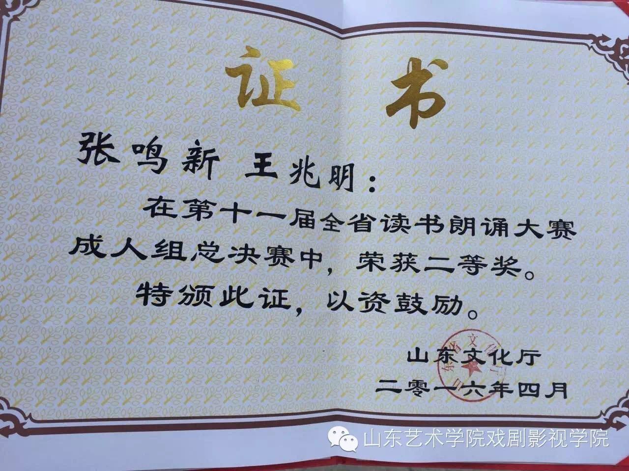 4月23日下午,第十一届全省读书朗诵大赛成人组决赛在山东省图书馆举行,我院2014级播音与主持艺术专业学生车文铎和徐东隆朗诵的《我的墓碑》、2013级播音与主持艺术专业学生尉伟男朗诵的《钱学森回国》、2013级播音与主持艺术专业学生任潇和山东师范大学2015级播音与主持艺术专业学生丁志浩朗诵的《没有冷却的泪滴》荣获一等奖;2014级播音与主持艺术专业学生王晨馨和王越朗诵的《沂蒙花开》、毛宽语和张晓萍朗诵的《井岗杜鹃红》、王兆明和张鸣新朗诵的《回家啦!老兵!》荣获二等奖;2014级播音与主持艺术专业学生林子雄朗诵的《雷电颂》荣获优秀奖。