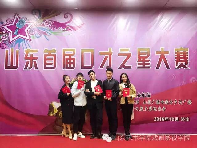 10月29日,戏剧影视学院的胡雨欣、李真、阚翰林、纪昊仁、朱广浩同学参与了由齐鲁晚报、山东省图书馆、山东广播电视乡村广播、山东省口才之星大赛组委会主办、山东省图书承办的山东省首届口才之星大赛。本次比赛旨在发现和培养优秀的口才之星,帮助每一位参赛选手在口才表达方面更上一个台阶!来自戏剧影视学院的同学们在展示风采的同时,揽获了本次大赛的诸多大奖!