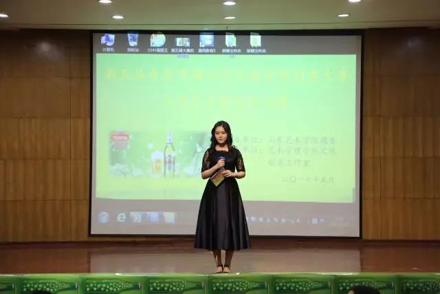 5月25日上午,第五届青岛啤酒微营销创意大赛山东艺术学院分赛区比赛在长清校区图书馆报告厅举行。本次比赛由山东艺术学院团委主办,艺术管理学院文化创意工作室协办,济南萝卜桃子文化传播有限公司王卫文总经理、艺术管理学院陈贵玲老师、学报编辑部景虹梅老师、设计学院钱凯老师和传媒学院车前老师担任评委。