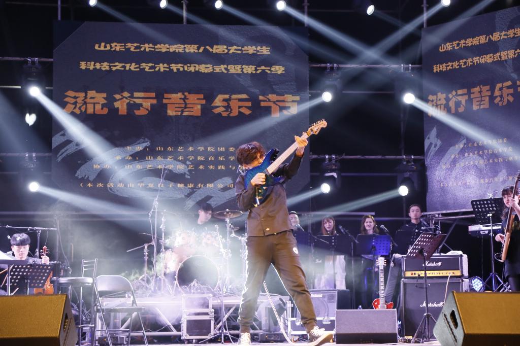 流行音乐节在黑糖乐队的《black sugar》激扬旋律中拉开了帷幕,用热情点燃了全场。歌曲《假行僧》、《浮夸》、《我要你》、《那些花儿》等动人的情歌为观众们带来了别样情怀;原创歌曲《飞》、《角色》用饱含激情的语言、悠扬动人的旋律,诠释了山艺学子出众的音乐才华和青春梦想。泉韵女子弹拨乐团、山东艺术学院青年弦乐团、星空长笛室内乐团、七月组合、冰封七日乐队、Confucion孔孟之子街舞社团以及MIX舞团的鼎力助阵更是将晚会的气氛带到最高潮,不管是歌曲串烧还是流行独唱,不论是乐器合奏还是令人热血沸腾的舞蹈,每一个动作,每一句唱词,都释放了蓬勃的青春力量,山艺学子们用流行音乐的独特魅力感染了每一颗爱音乐的心灵。最后,晚会在全场大合唱《我爱你中国》动人歌声中落下帷幕,表演人员依次上场,深深鞠躬,向现场观众致敬,向流行音乐致敬,向伟大的新时代新征程致敬。