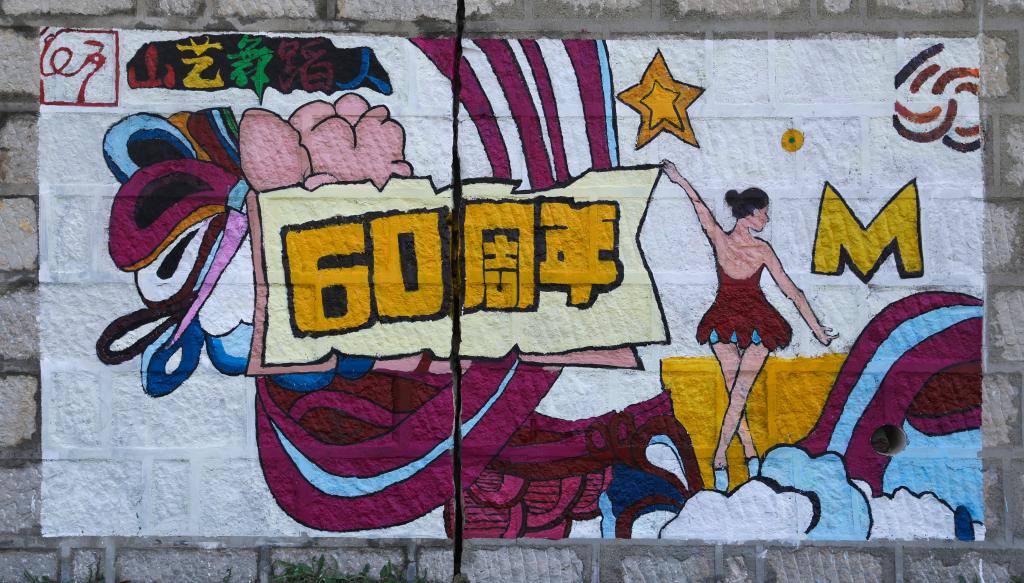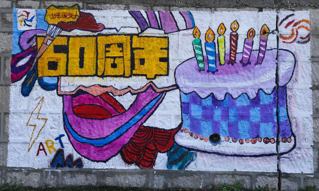 本次涂鸦大赛共有驻长清的9个二级学院的140余名同学参加,涂鸦画面以九个二级学院名称和数字“60”为基本元素创意变换,参赛选手们细细勾勒,用手中的画笔彰显个性与创意,为山艺建校六十周年献上一份真挚的祝福。经过两天的辛勤创作,餐厅前的小石墩、教学楼前的井盖、运动场周围的墙壁,呈现出一个个构思精妙、色彩艳丽的涂鸦作品。校团委、设计学院党总支负责人,校庆办公室和二级学院团总支老师对各二级学院涂鸦大赛的绘制成果进行现场评分。最终,美术学院获得一等奖,戏剧影视学院、职业教育学院获得二等奖,艺术管理学院、舞蹈学院、戏曲学院、传媒学院、国际交流学院获得三等奖。