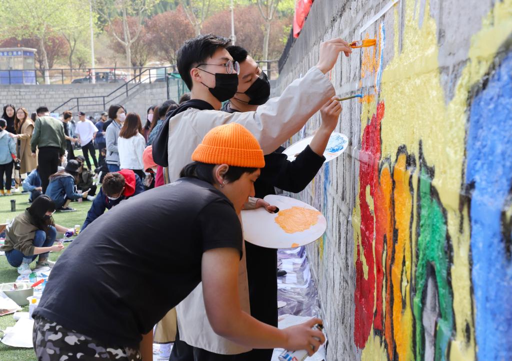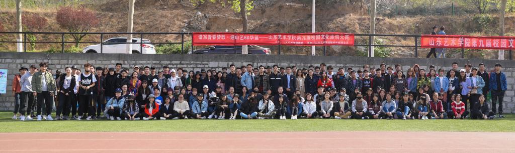 本站讯 4月17日,由校团委主办、设计学院团总支承办的“谱写青春赞歌,迎山艺六十华诞”山东艺术学院第九届校园文化涂鸦大赛在长清校区运动场圆满结束,校团委、设计学院党总支负责人,校庆办公室、各二级学院团总支老师担任涂鸦大赛评委并为获奖学院颁了奖。