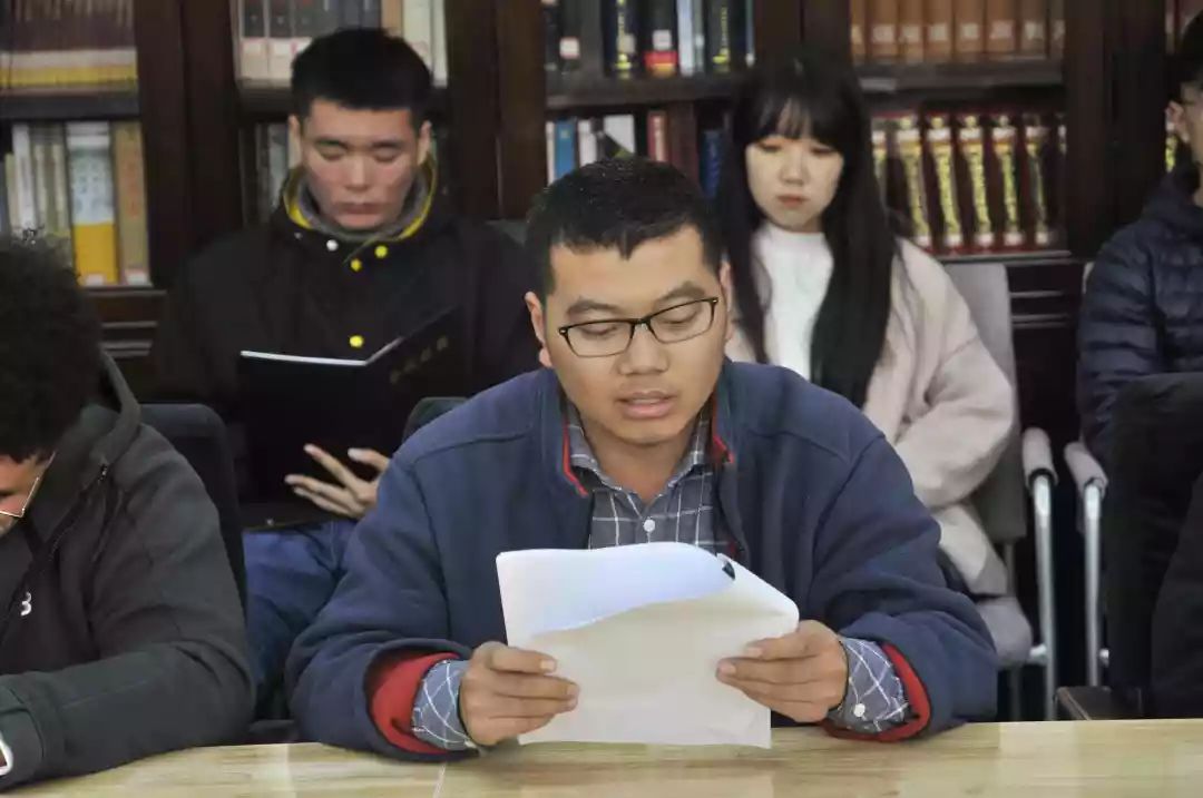 会上,与会人员在青习社社长孔繁昌带领下全文学习党的十九届四中全会公报,通过逐句逐字的学习,让青年学生准确把握会议内容,深入体会会议精神。