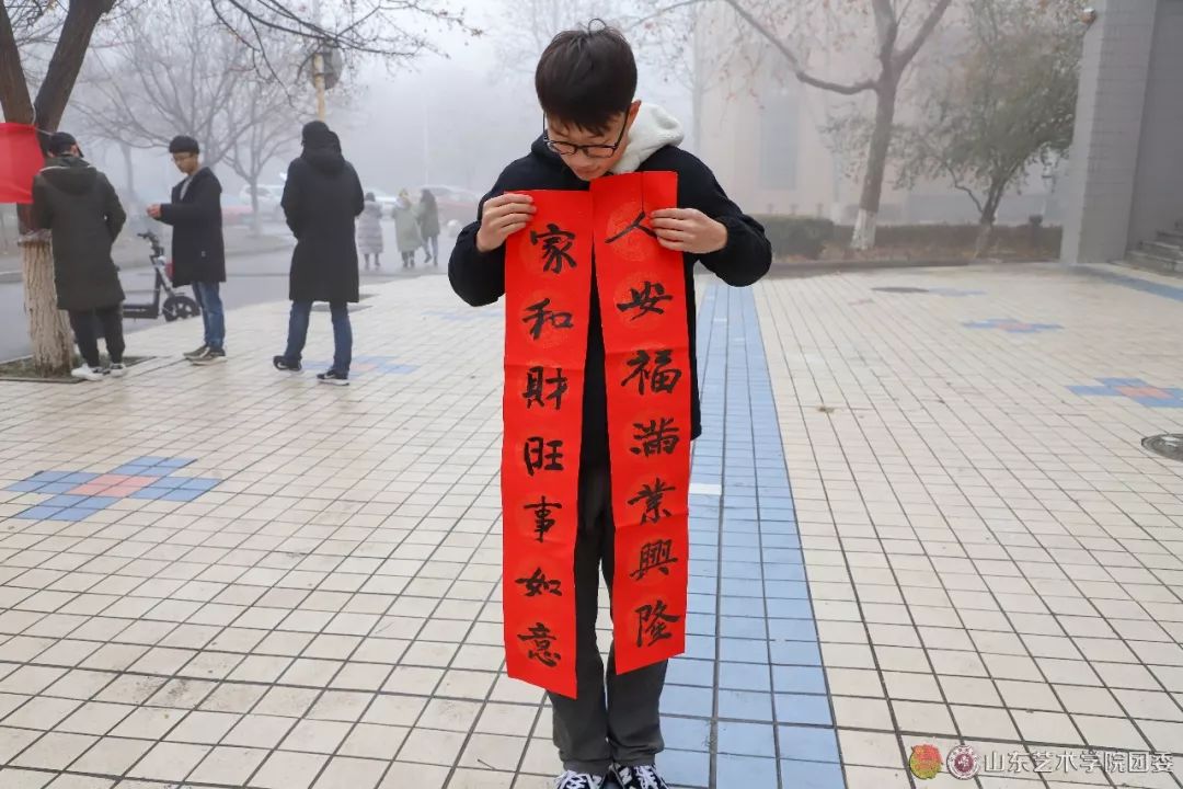 2020年1月6日,由山东艺术学院团委主办,校学生会承办,以“笔墨凝香,新春送福”为主题的志愿服务活动在食堂门口举行。