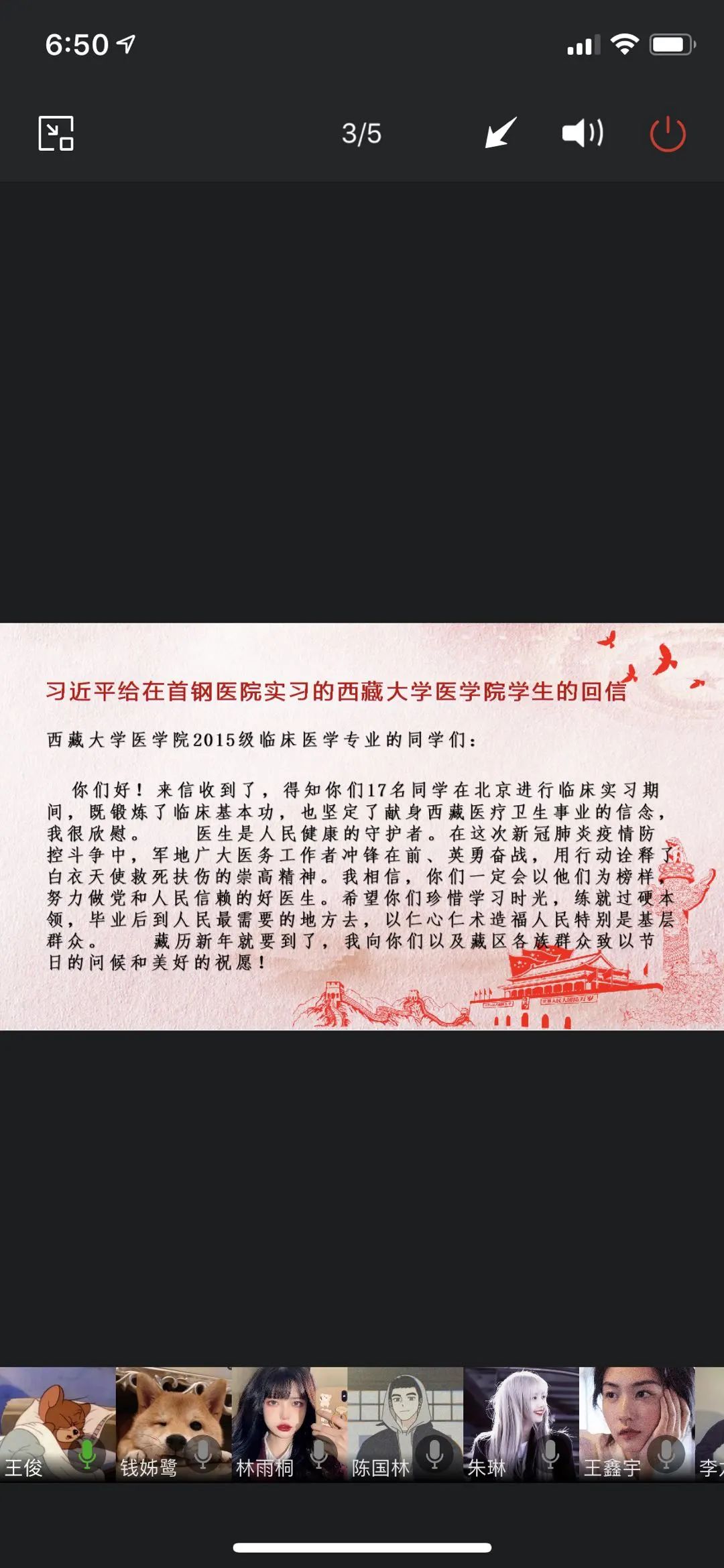 团支部书记王俊带领青马学员学习了习近平总书记给北京大学援鄂医疗队全体“90后”党员的回信、习近平总书记给在首钢医院实习的西藏大学医学院学生的回信以及总书记五四青年寄语。