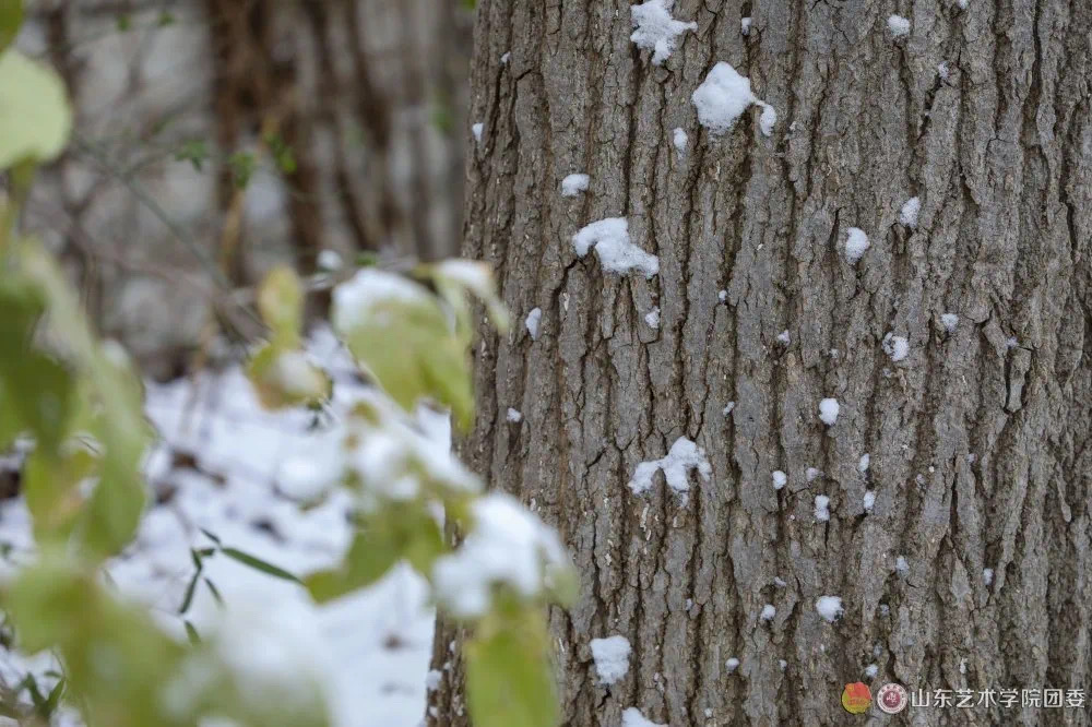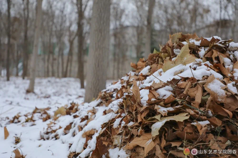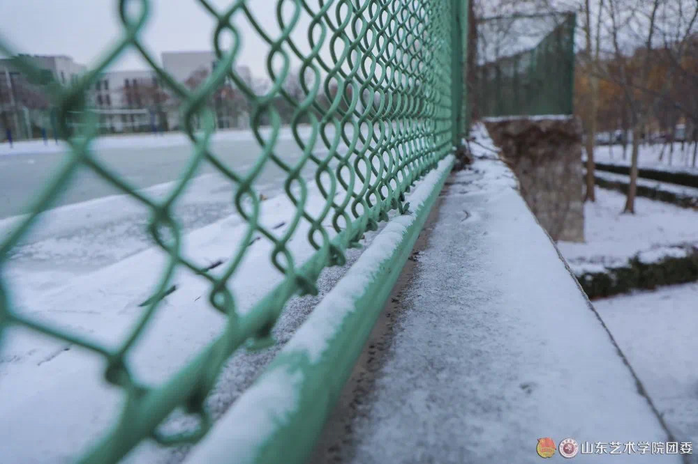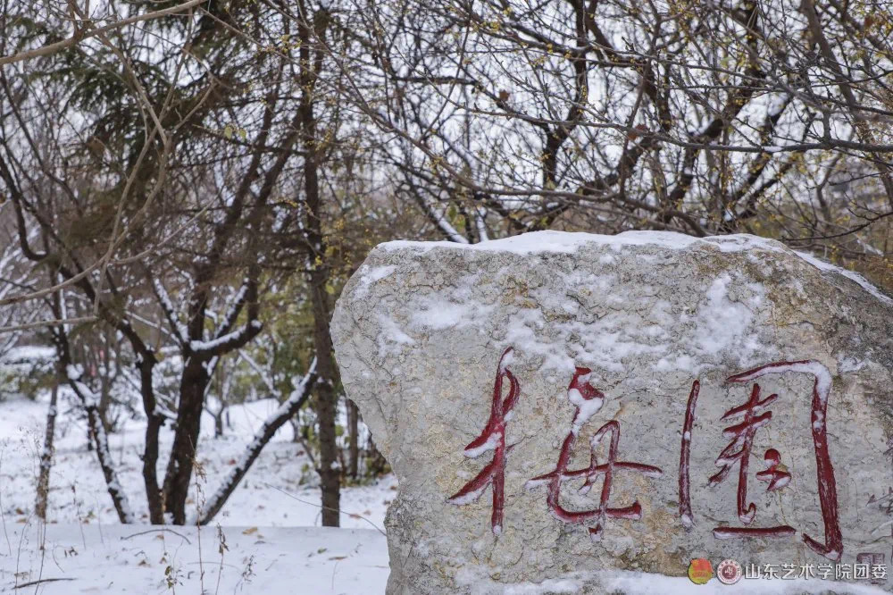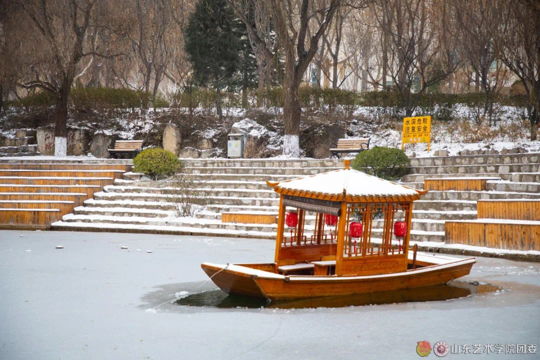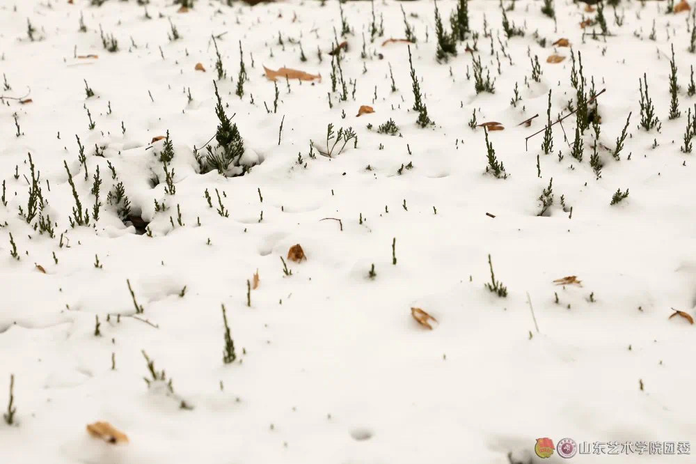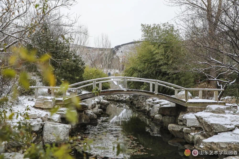 今天,山艺终于迎来了入冬以来的第一场雪。远处的山头披上银装,昨日的苍茫变的清明,平日盎然生机的梅园,此时也盖上了一层白纱,高傲的白天鹅融入湛白雪色,增添一份活力。