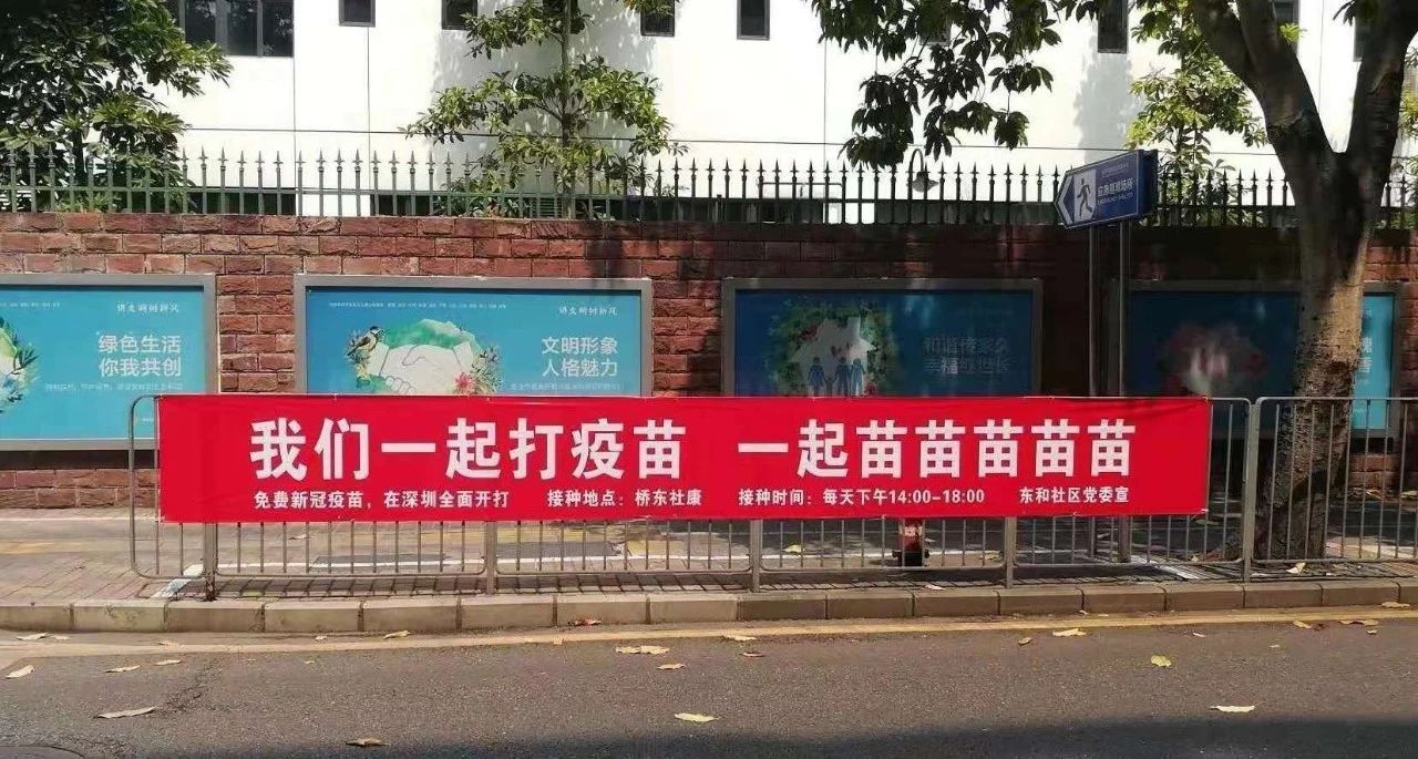 网上热传的“我们一起打疫苗,一起苗苗苗苗苗~”标语,出自深圳市盐田区东和社区桥东社康,作为“深圳最洗脑的打疫苗标语”被刷爆了!“2021年头等大事,就是接种新冠疫苗~”。所以,你们今天排队打疫苗了吗?