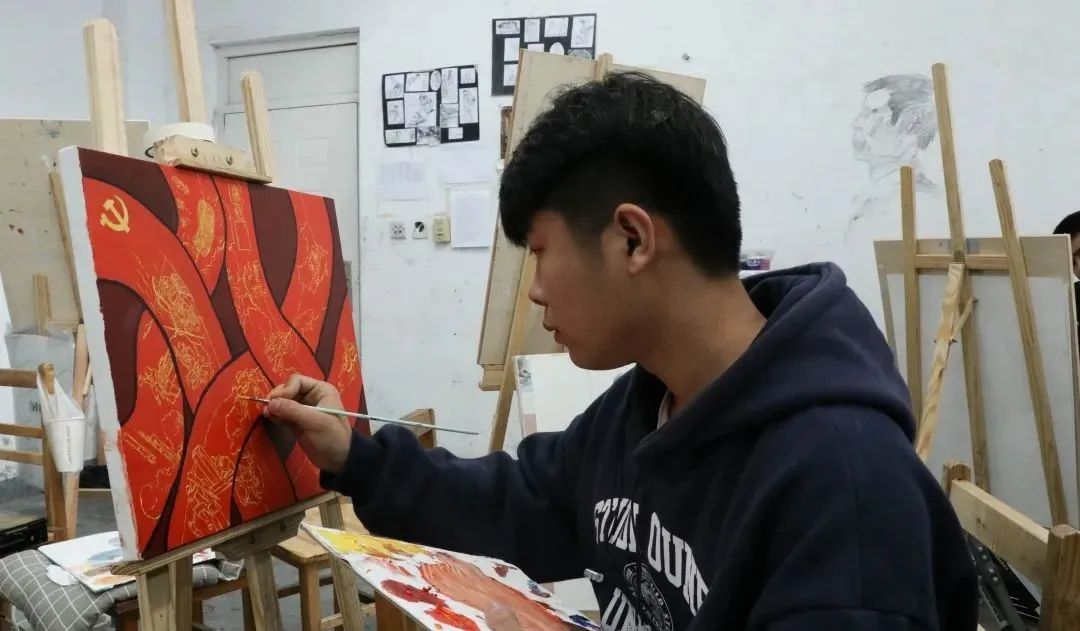 前期,美术学院团总支通过线上微信公众号、线下宣讲结合的方式对大赛的主题、作品要求、提交方式进行了宣传布置,吸引了广大青年学子的热情参与。各二级学院发挥不同专业优势,鼓励广大青年学子各抒己长,运用不同的艺术表现形式用心、用情、用功地投入主题艺术创作。