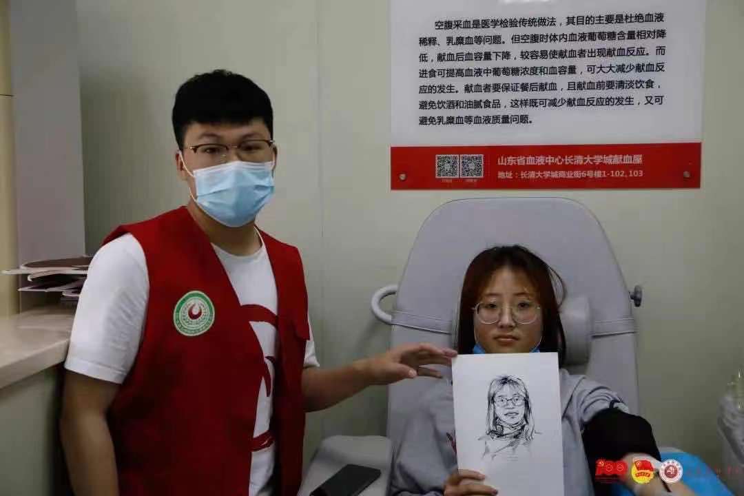 清晨,志愿者们来到献血屋,为献血者现场进行速写画像,并通过赠送手绘小卡片的形式,用艺苑学子独特的方式,将爱与温暖传递给每一个献血者。午后,志愿者们帮助献血小屋打印照片、测量血压、分发宣传单、分配食物等,在志愿服务的过程中,增进了对无偿献血事业的了解。用青春热血展现责任与担当,以实际行动体现了无私奉献、不求回报的志愿精神。