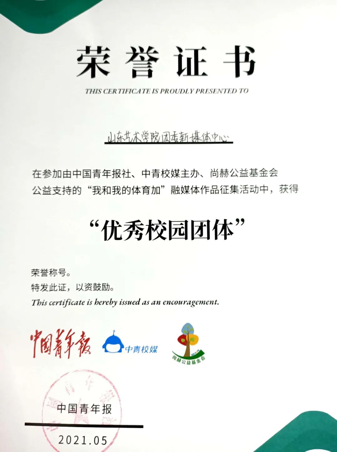 山东艺术学院团委新媒体中心响应号召,积极参与本次活动,并荣获了优秀校园团体、优秀指导老师和优秀学生负责人三个奖项。