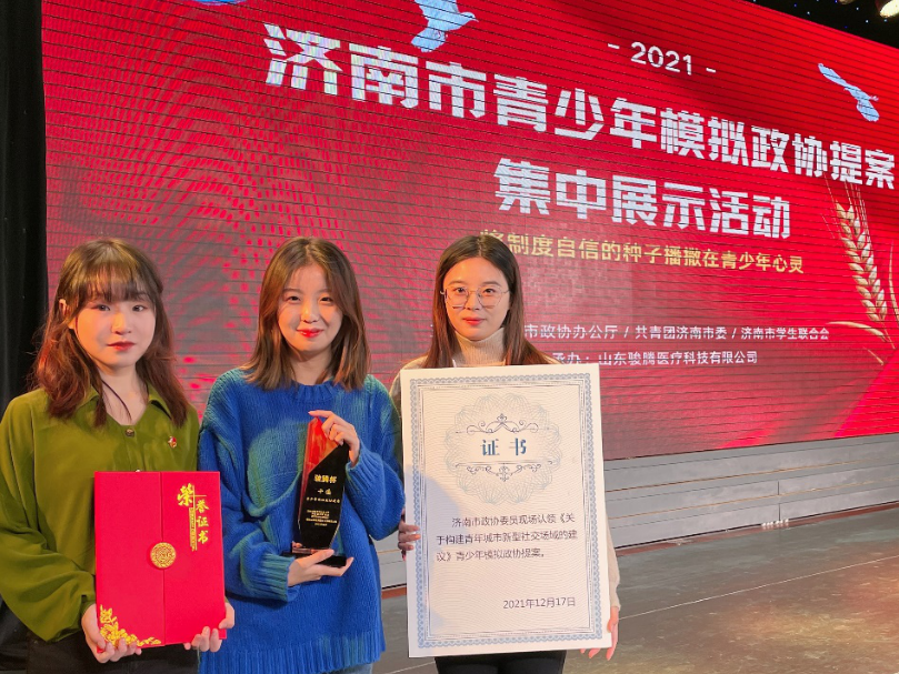 2021年12月17日上午,由市政协办公厅、团市委、市学生联合会主办的济南市青少年模拟政协提案集中展示活动落下帷幕。我校艺术管理专业的学生团队首次参加该活动并取得佳绩,荣获2021年济南市“青少年模拟政协提案风采展示奖”、2021年济南市“优秀青少年模拟政协提案”,指导老师陈凌荣获“优秀指导老师奖”。