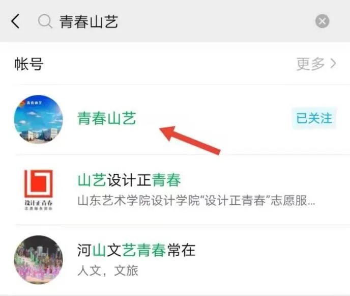 搜索方式在这里哦:方式一,搜索公众号“山东艺术学院团委”进入主页,在下方点击“视频号—青春山艺”。