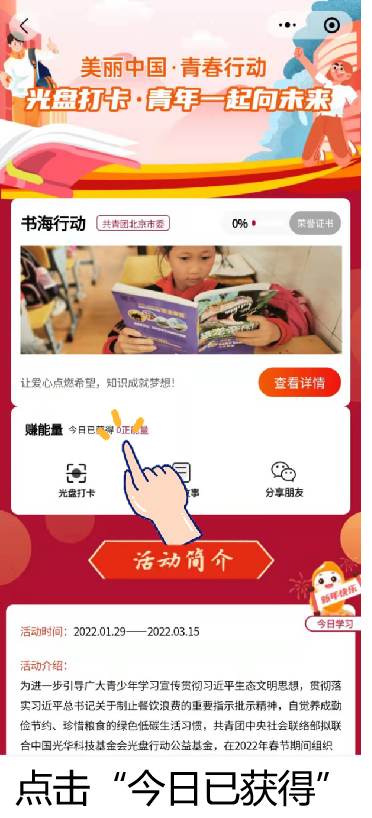 1月29日至3月15日美丽中国·青春行动,光盘打卡·青年一起向未来等你!