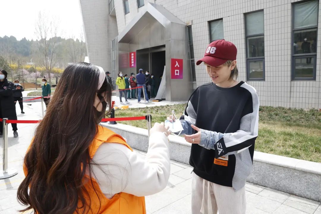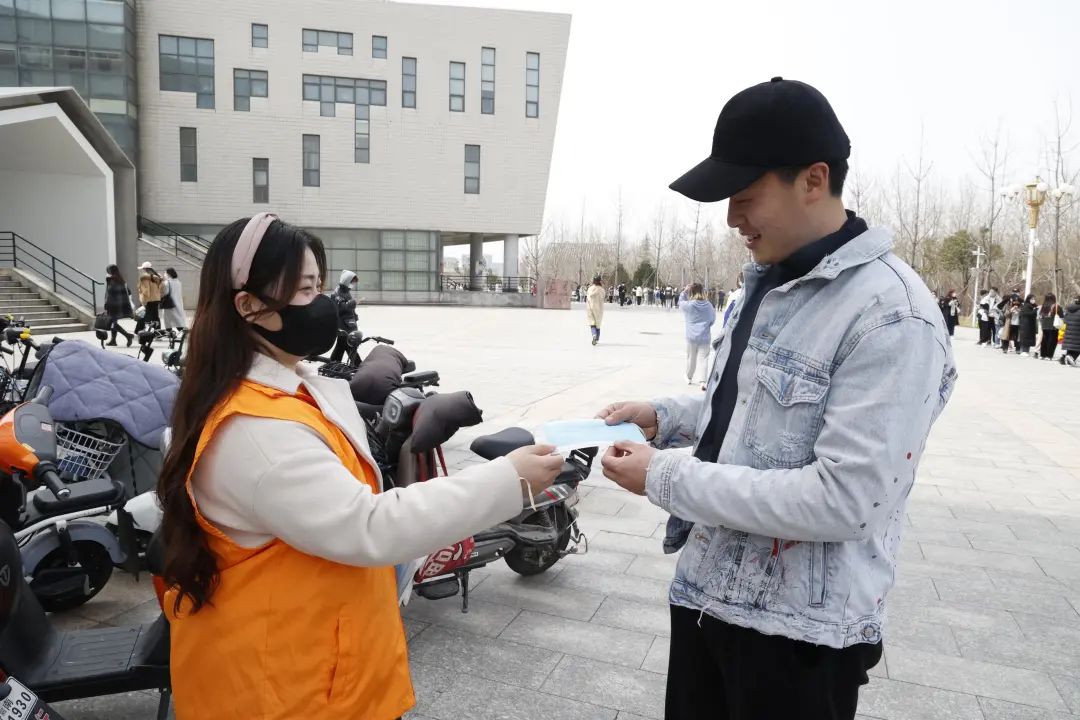 收到学校“大礼包”后,部分志愿者来到核酸检测抽测现场,维持秩序、劝导同学,对不佩戴口罩的同学耐心劝导,及时送上学校下发的口罩,将学校的爱心、关心传到至每位同学。