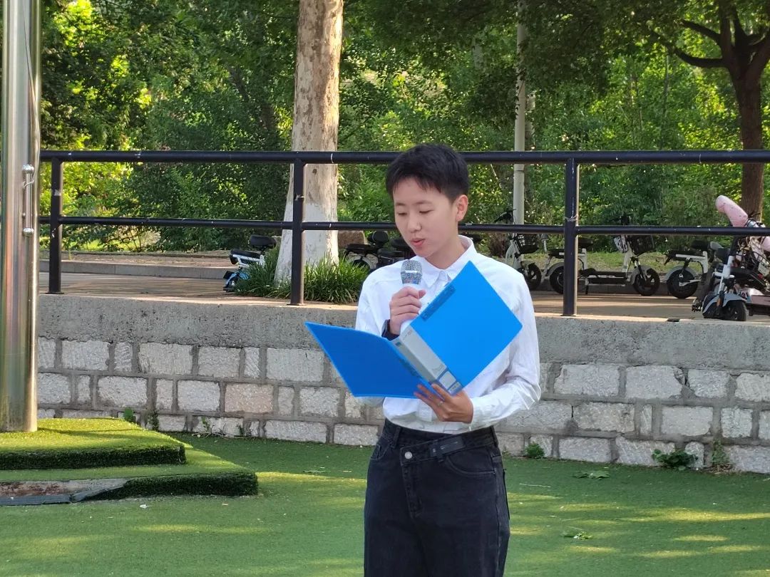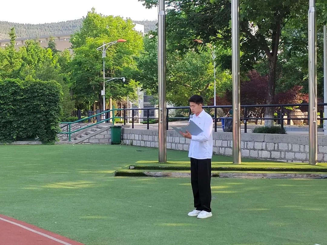 活动伊始,伴随着洪亮的一声“齐步走”,我校国旗护卫队迈着坚定有力的步伐走向升旗台。全体人员怀着崇敬与自豪的心情,行注目礼,共唱国歌,鲜艳的五星红旗迎风飘扬。青马学员、老团员代表丛林立进行国旗下演讲,他就“如何做好新时代的共青团员”,分享了自己的感受与经验。