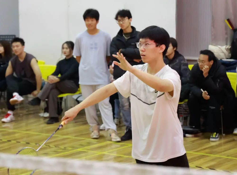 参赛队员早早来到了比赛场地进行热身运动,大家都摩拳擦掌,跃跃欲试。哨声一响,现场气氛一片火热,每一位参赛选手都以饱满的热情和昂扬的斗志投入到比赛中。发球、挥拍、扣杀、防守,赛场上的同学们奋力拼搏、相互配合,一招一式都充分展现了选手们精湛的球技、灵活的步伐、矫健的身姿,场下观众喝彩声、加油声、欢呼声此起彼伏。无论是选手还是观众,都充分享受着比赛,感受着体育的魅力。