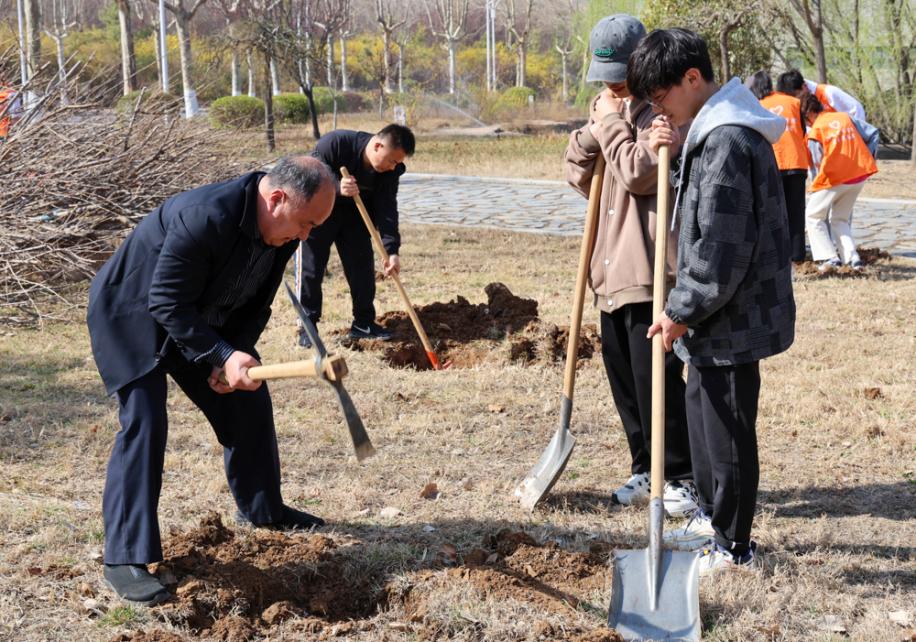 3月10日,在植树节到来之际,学校在长清校区图书馆南侧空地组织开展“学雷锋树新风 植树爱绿在行动”植树活动。学校党委副书记杨西国参加活动并带头植树。组织部统战部团委党支部、后勤管理处、校团属学生组织学生代表等30余人参加活动。