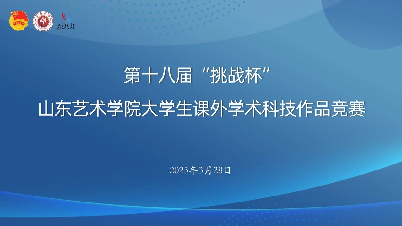3月28日,第十八届“挑战杯”山东艺术学院大学生课外学术科技作品竞赛在长清校区办公楼报告厅成功举办。来自济南大学、齐鲁工业大学(山东省科学院)、山东财经大学、山东中医药大学、济南职业学院等兄弟高校的专家组成评委会,36个项目进行了路演展示。