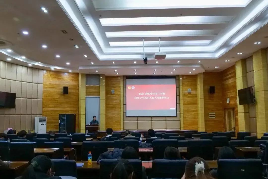 4月23日下午,2022—2023 学年第二学期团属学生组织工作人员述职评议会在办公楼二楼报告厅举行。校团委老师,校学生会、研究生会、团委新媒体中心、社团管理部全体工作人员参加会议。